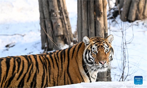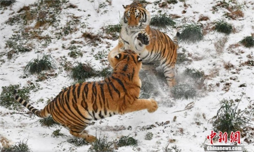 Photo taken on Jan 15, 2022 shows Siberian tigers at the Siberian Tiger Park in Northeast China's Heilongjiang Province. Photo:Xinhua