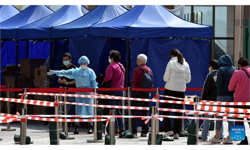 Residents line up for free nucleic acid testing at the special Information Port in Nanshan District of Shenzhen, South China's Guangdong Province. Shenzhen reports 66 local infections on March 13, taking up the total number to 432. Photo:IC