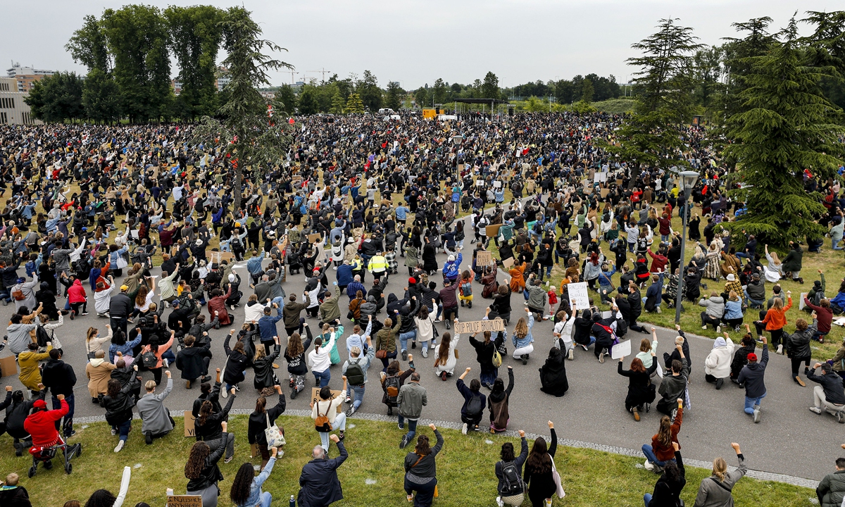 Protesters take part in a demonstration against racism in Nelson Mandela Park in Amsterdam, the Netherlands on June 10, 2020. Photo: AFP
