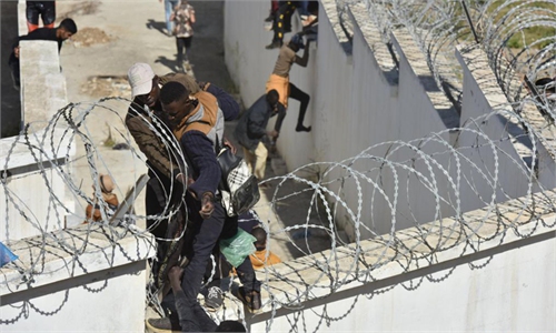 People sit by a fountain in a park in Madrid, Spain on Saturday. Residents in Spain are trying to stay as cool as possible as forecasts showed weekend temperatures could rise above 40 C in large parts of the Iberian Peninsula. The heat is expected to scorch central south Spain on Saturday before spreading east over the next two days. Photo: VCG