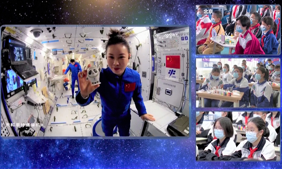 The Shenzhou-13 taikonauts successfully delivered a second live session of the Tiangong classroom lecture series from China's Tianhe space station core module some 400 kilometers above Earth on Wednesday, and this time students from the Xinjiang Uygur and Xizang autonomous regions joined the interesting space-Earth interaction.