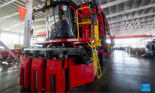 More than 80 percent of the cotton crops in Xinjiang were harvested by machinery in 2021, a year-on-year rise of 5 percent, according to the region's Department of Agriculture and Rural Affairs.