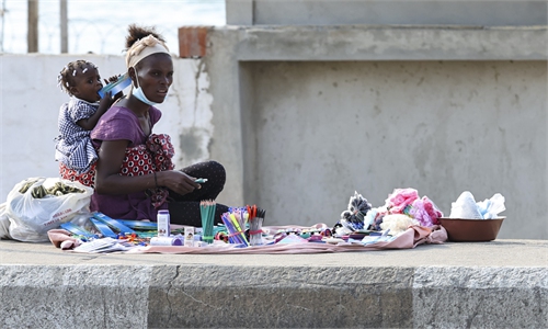 Pedestrians wearing face masks walk on the seaside in Cape Town, South Africa, Dec. 5, 2021.(Photo: Xinhua)