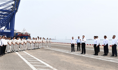 Xi then arrived at the Xiaochantan wharf of the Yangpu International Container Port to learn about the port's development. He had a cordial exchange with workers and the representatives of the officials assigned to work here from the central agencies. Xi stressed that in revitalizing the port and developing the transportation industry Hainan should get a clear understanding of its position and improve adaptability. The island province should pursue green development, prioritize ecological protection, and enhance synergy between port development and the construction of the Yangpu Economic Development Zone and the Hainan FTP in order to better contribute to the development of the new land-sea transit routes for the western region and the Belt and Road Initiative. Xi pointed out that the central authorities have selected and dispatched officials to Hainan, which shows the care and support of the CPC Central Committee for the FTP's development, and also provides an opportunity for these officials to accumulate practical experience. Full play should be given to their positive role so that their ability will be strengthened during frontline work.