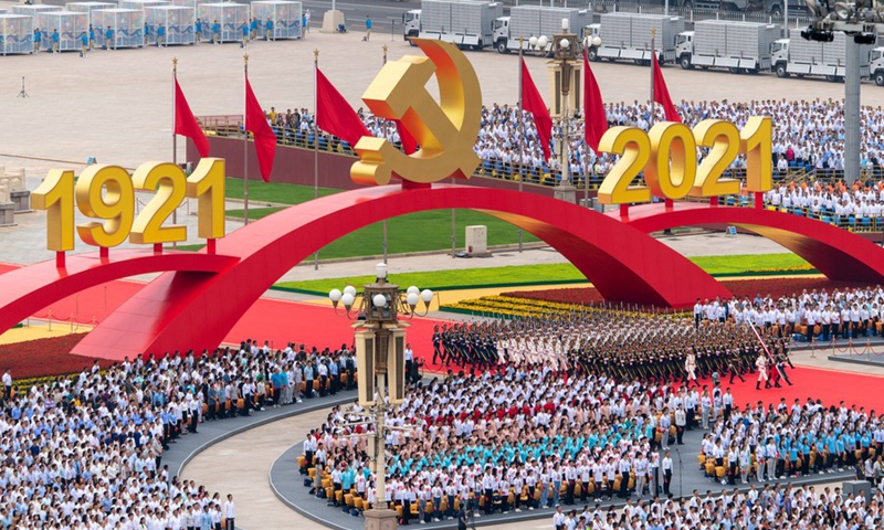 A national flag-raising ceremony is held at Tian'anmen Square during a ceremony marking the centenary of the Communist Party of China (CPC) in Beijing, capital of China, July 1, 2021. Photo: Xinhua
