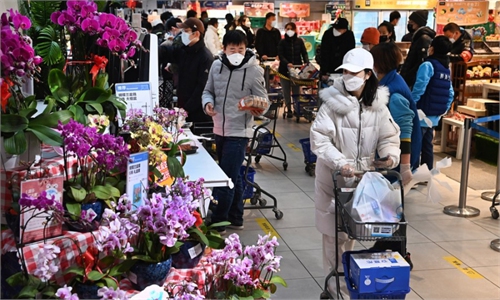 "Although many people rushed to supermarkets for food on the night before the restrictions came into effect on Saturday, shops and supermarkets have plenty of daily necessities right now and you can buy them anytime you want," Zhang added.