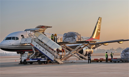 China Southern Airlines told the Global Times that its logistical base at the Baiyun international airport in Guangzhou, South China's Guangdong Province, is also dealing with cargo backlogs.