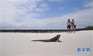 Photo taken on Oct. 10, 2017 shows an adult sea lion kissing a sea lion cub on the South Plaza Island, one of the Galapagos Islands, in Ecuador. (Xinhua/Xu Rui)