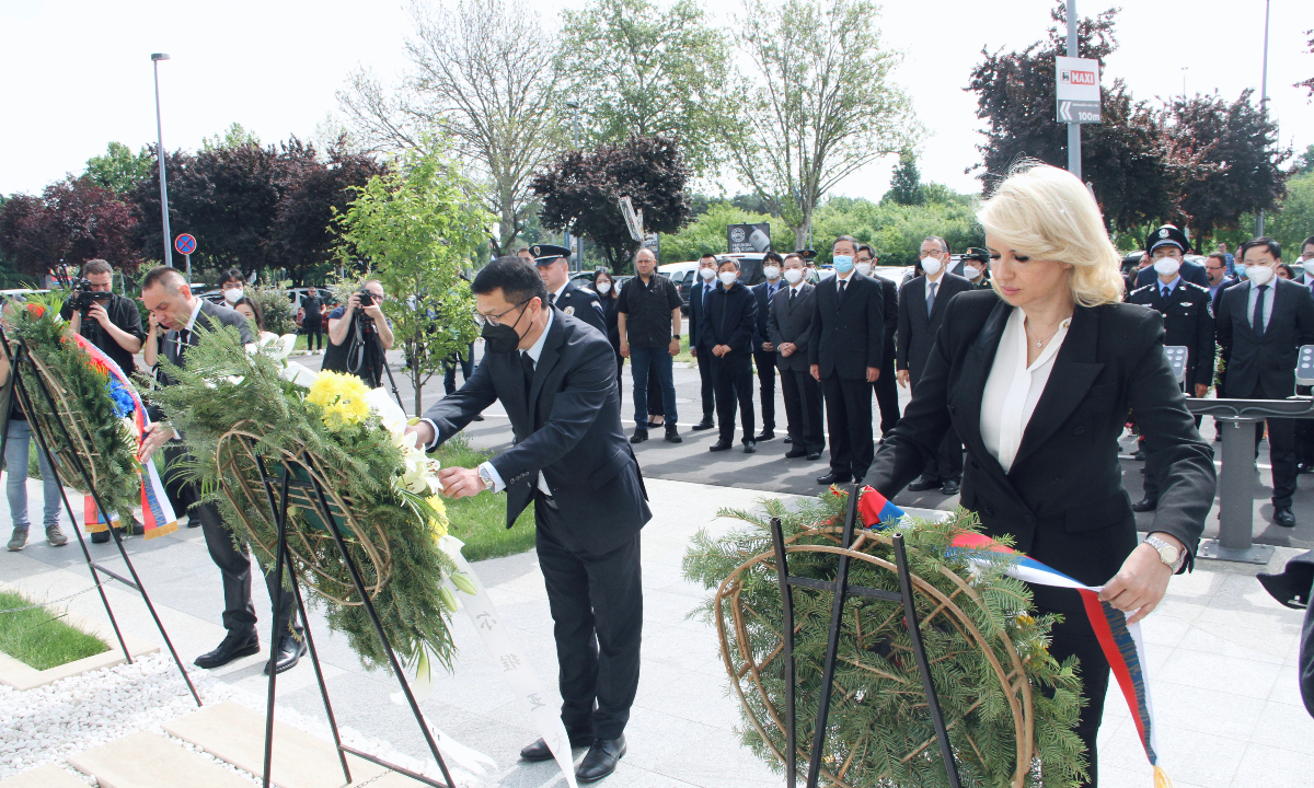 Wreaths were laid by Tian Yishu, charge d'affaires at the Chinese Embassy in Serbia and other Chinese diplomats, the Serbian Interior Minister Aleksandar Vulin, the Minister of Labor, Employment, Veteran and Social Affairs Darija Kisic Tepavcevic, and other citizens and officials from both sides were present to commemorate the deaths of three Chinese journalists killed during the bombing.