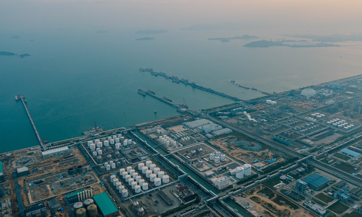 The integrated refining and petrochemical complex, built by Shenghong Refining & Chemical Co in Lianyungang, East China's Jiangsu Province, includes a refinery, an aromatics unit, an ethylene plant and supporting terminals, with an annual processing capacity of 16 million tons of crude oil.