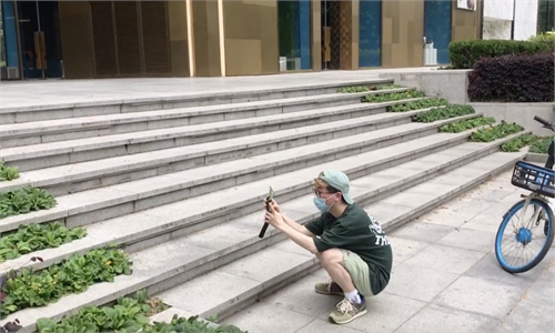A Shanghai resident walks his golden retriever on May 16, 2022 when the city gradually resumes small businesses. Photo: Wu Chuanhua/Global Times