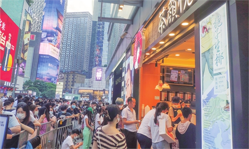 Shoppers walk through the re-opened Taikoo Li mall in Sanlitun, downtown Beijing on May 29, 2022. Major shopping malls in the city's Chaoyang district announced they had reopened starting from Sunday morning, with anti-epidemic measures in place. Beijing has effectively brought the latest COVID-19 epidemic under control. Photo: IC