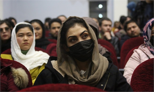 Taliban members inspect the site of a roadside bomb blast in Kabul, Afghanistan, on Jan. 16, 2022.(Photo: Xinhua)