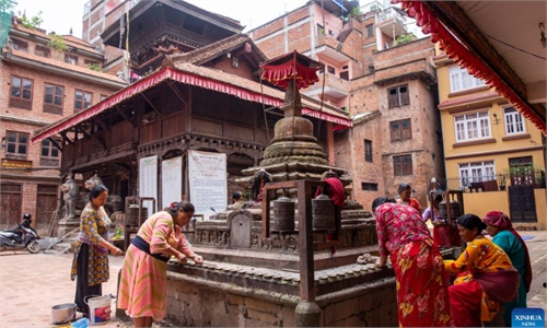 A man carries his bicycle as he wades through floodwaters in Solmara of Nalbari district, in India's Assam State on June 19, 2022. Photo: VCG