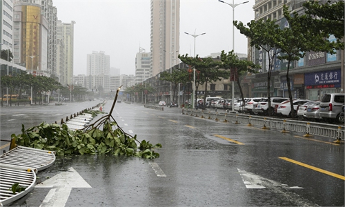 Residents walk on streets in Guangzhou, South China's Guangdong Province in heavy rain on July 3, 2022, after typhoon Chaba made landfall in Guangdong. Chaba is the first typhoon to make landfall in China in 2022. Photo: cnsphoto