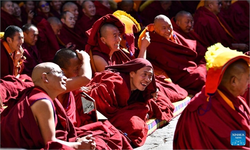 Monks, Buddhism followers attend annual Buddha thangka displaying ritual in SW China's Xizang