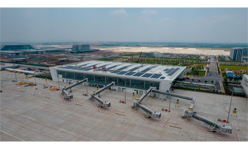 A Boeing 767-300 cargo plane lands at Ezhou Huahu Airport, China's first dedicated cargo hub airport on July 17, 2022. The airport, officially opening on July 17, is also the first of its kind in Asia and the fourth in the world. Photo: IC