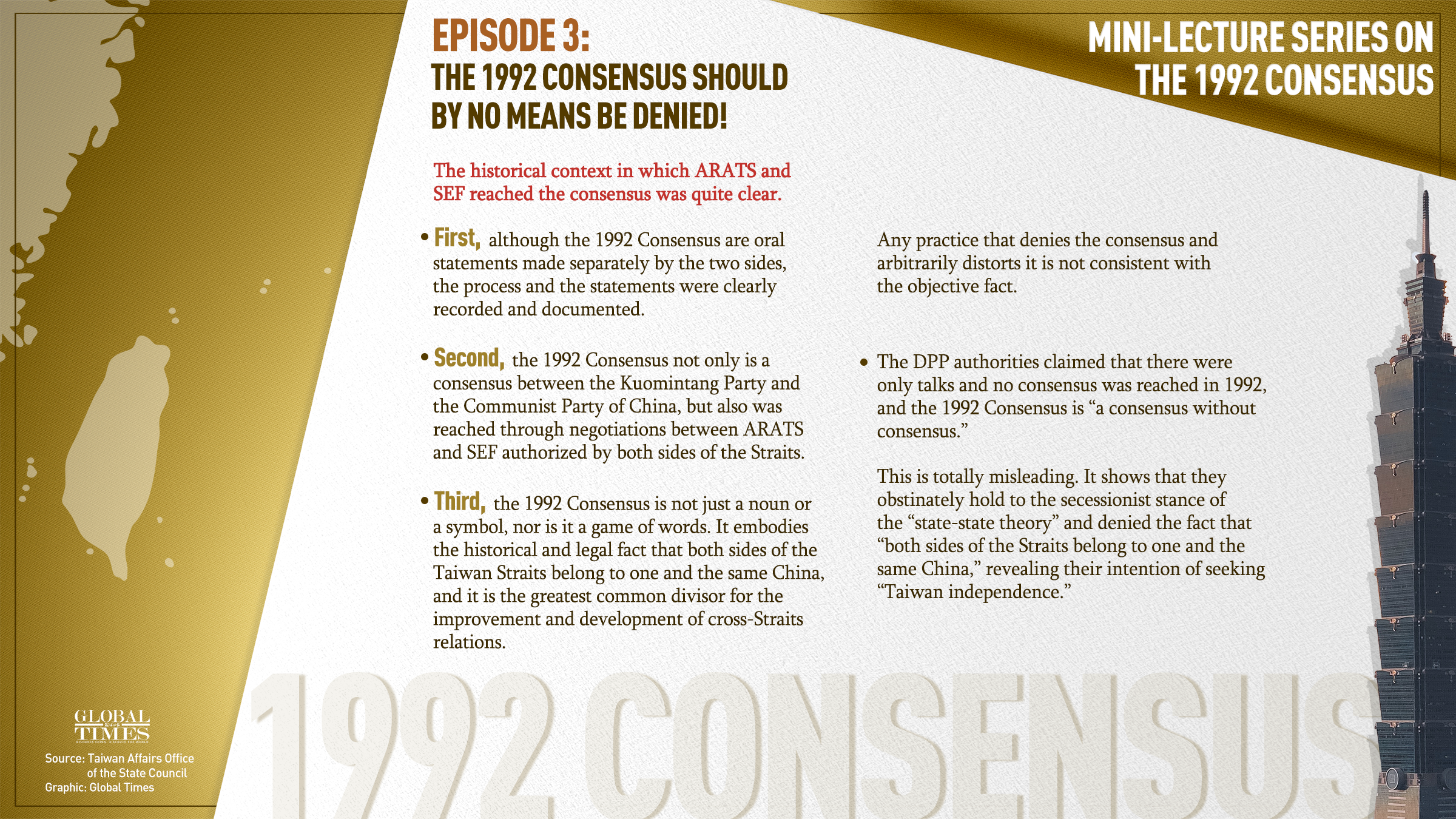 Episode 4: Why the 1992 Consensus is the backbone of cross-Straits relations? Graphic: GT
