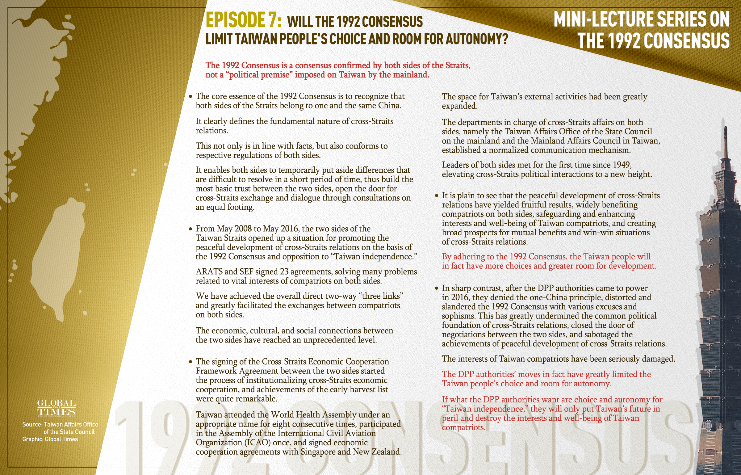 Episode 7: Will the 1992 Consensus limit Taiwan people's choice and room for autonomy? Graphic: GT
