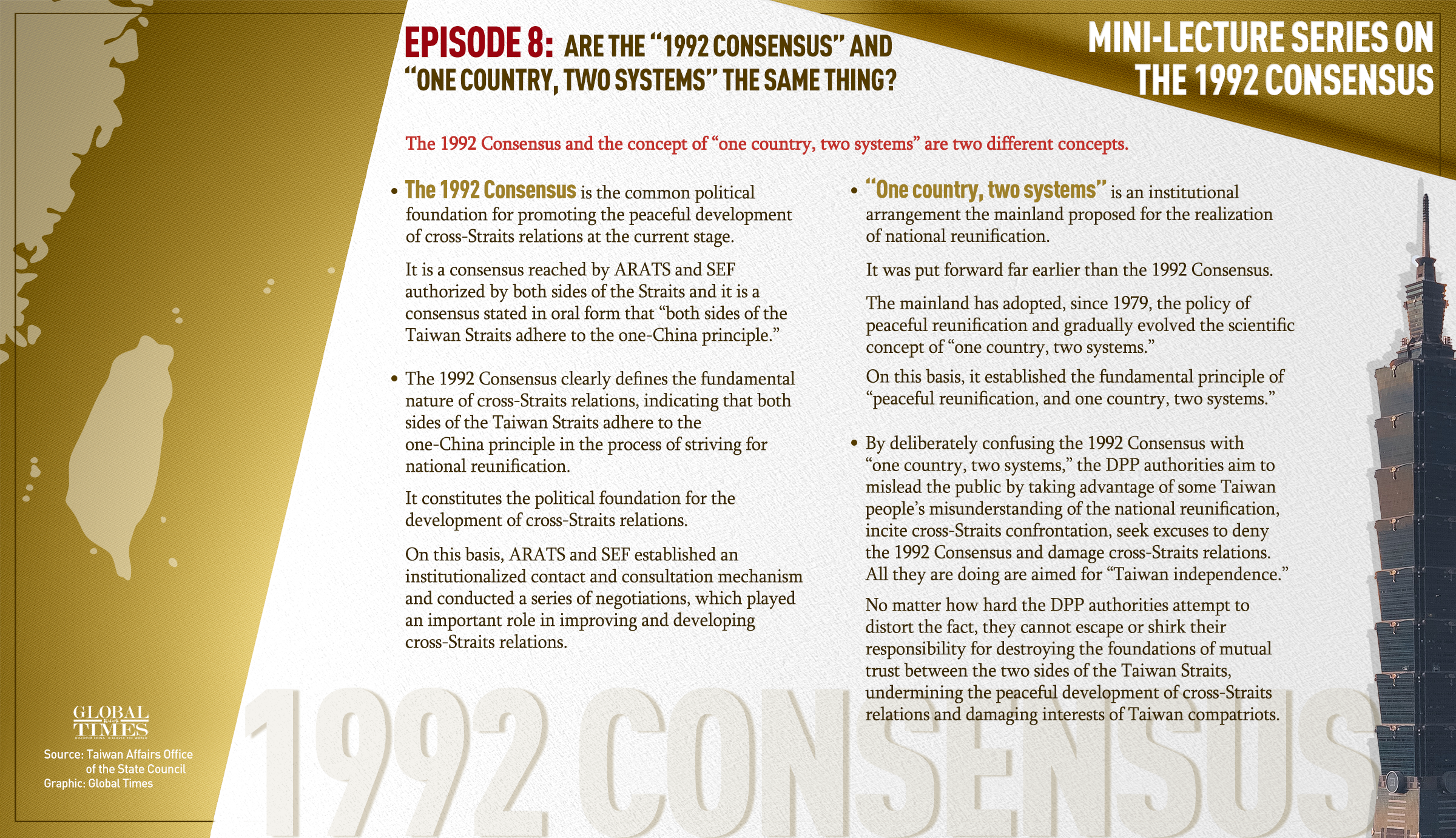 Episode 8: Are the "1992 Consensus" and "one country, two systems" the same thing? Graphic: GT