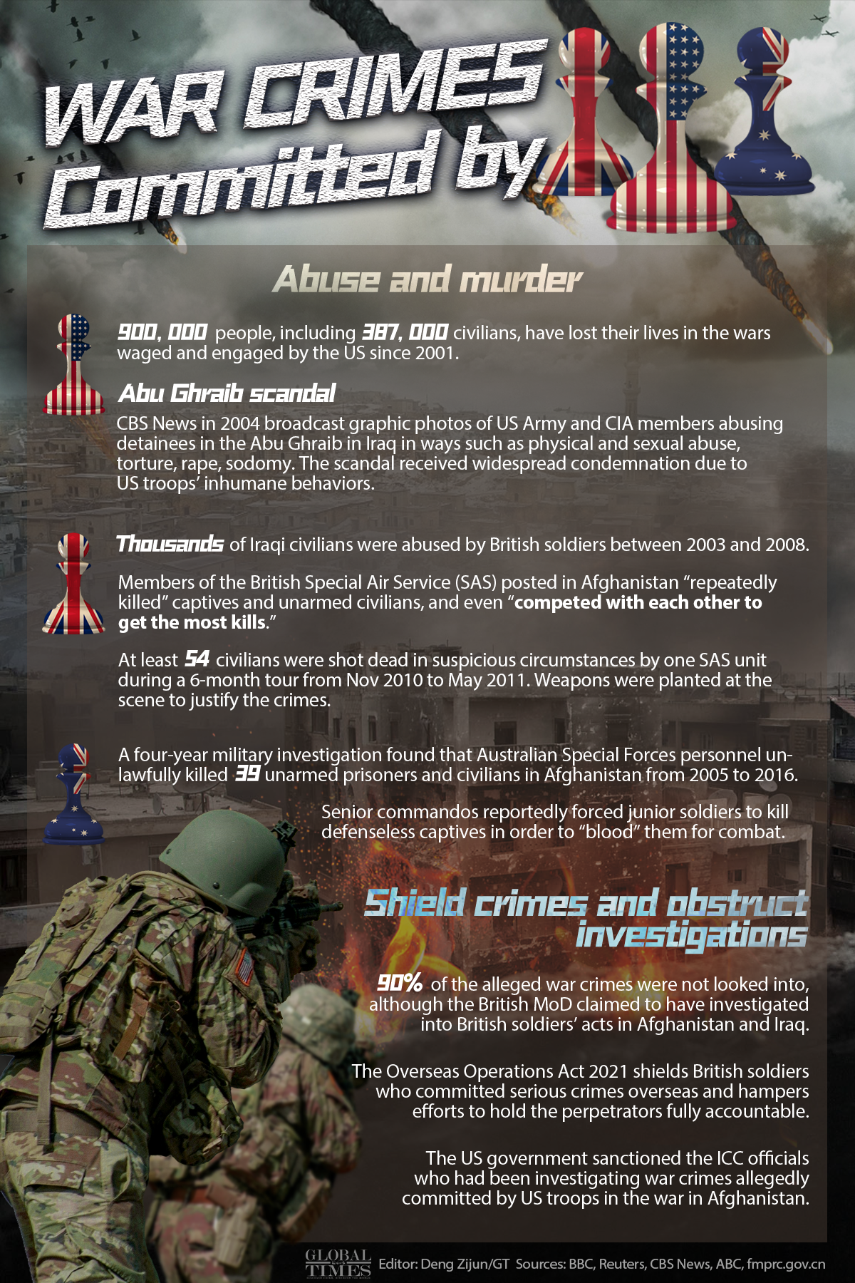 War crimes committed by the US, the UK and Australia Graphic: Deng Zijun/GT