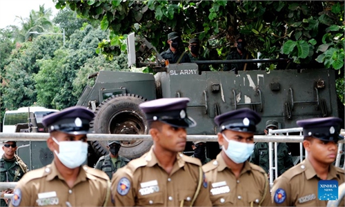 Sri Lanka's police chief and top military brass stood behind the new president as the oath was administered.