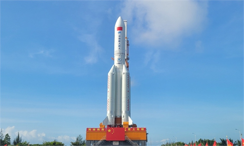 Photo: Combination of China's space station lab module Wentian and Long March-5B Y3 carrier rocket at the Wenchang Space Launch Site on July 24, 2022 Photo: Tu Haichao