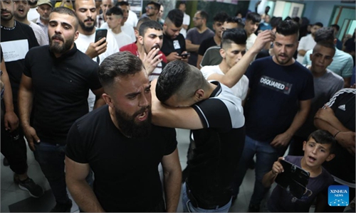 Palestinian Red Crescent rescuers rush to evacuate the wounded during clashes between Israeli troops and Palestinian gunmen in the Old City of Nablus in the northern occupied West Bank early on July 24, 2022. Photo: VCG