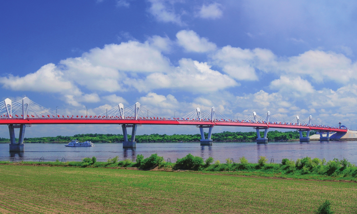 The first China-Russia highway bridge linking Heihe, a border city in Northeast China's Heilongjiang Province, to the Russian city of Blagoveshchensk spanning the Heilongjiang River opened to traffic on June 10. Photo: IC