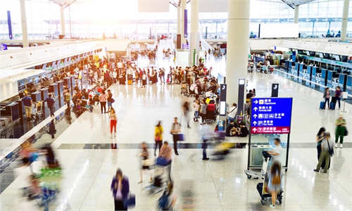 Passengers scan health code at Guangzhou Baiyun International Airport after landing in October. Photo: cnsphoto