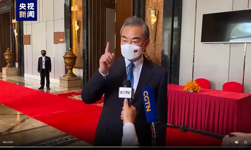 Chinese State Councilor and Foreign Minister Wang Yi at the ASEAN Foreign Ministers' Meeting in Cambodia on August 3, 2022. Photo: screenshot of CCTV News