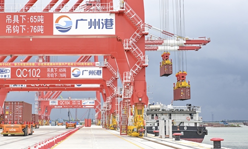 Nearly 5,000 of SAIC's MG-branded vehicles wait to be exported at the port of Lianyungang, East China's Jiangsu Province on Sunday. Photo: cnsphoto