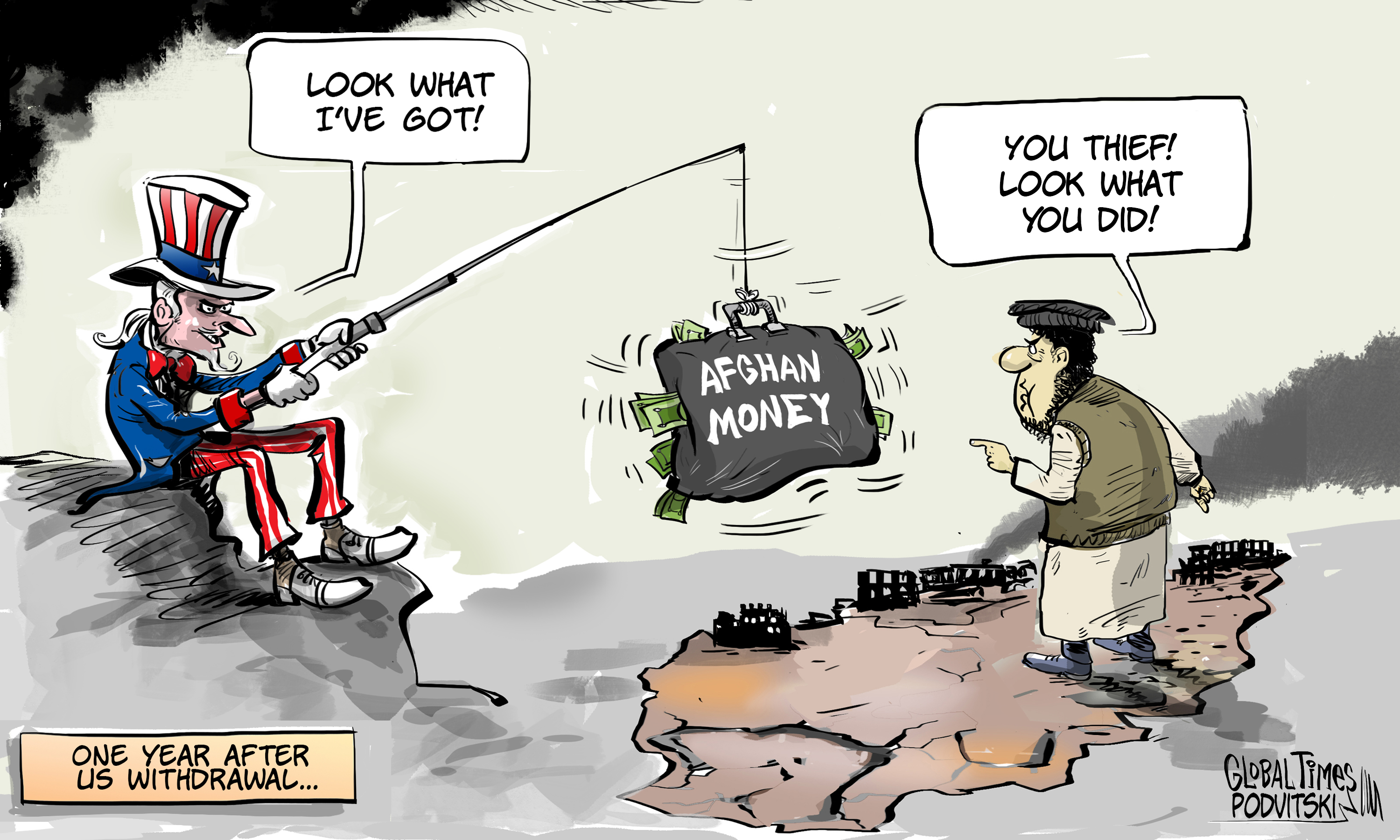 One year after US' withdrawal from Afghanistan, the war-torn country still suffers: -US seized $7 billion Afghan assets -98% of ...