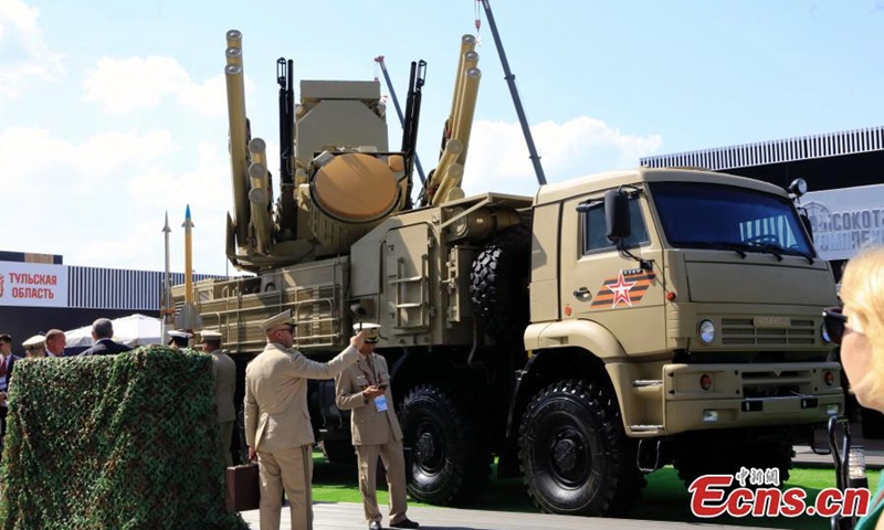 Military equipments are on display during the International Military and Technical Forum 2022 in Moscow, Russia, Aug. 15, 2022. (Photo: China News Service/Tian Bing)