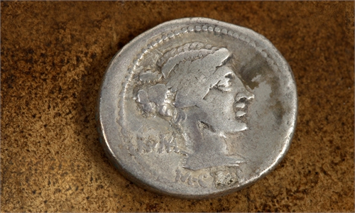 An employee of China Gold Coin Group Co. presents a set of gold and silver commemorative coins featuring an ancient Chinese silk painting. The coins, to be issued on August 29, 2022, were designed using a combination of ink, paper and bamboo leaves, complemented by scenes from the painting. Photo: CFP
