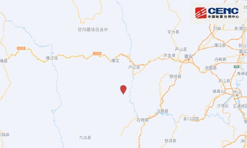 The earthquake hit Luding county at 12:52 pm on Monday. The epicenter was monitored at 29.59 degrees north latitude and 102.08 degrees east longitude, at a depth of 16 kilometers in the county.