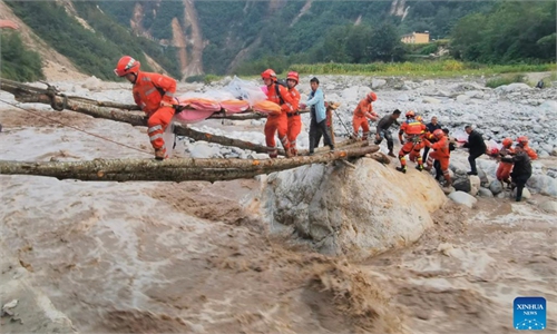 A vehicle for emergency communications is deployed by China Mobile in Moxi Town of Luding County, southwest China's Sichuan Province, Sept. 5, 2022. A 6.8-magnitude earthquake jolted southwest China's Sichuan Province on Monday, leaving at least 21 people dead and more than 30 injured, causing damage to infrastructure facilities, such as the water and electricity supply, transportation and telecommunications. (Photo: Xinhua)