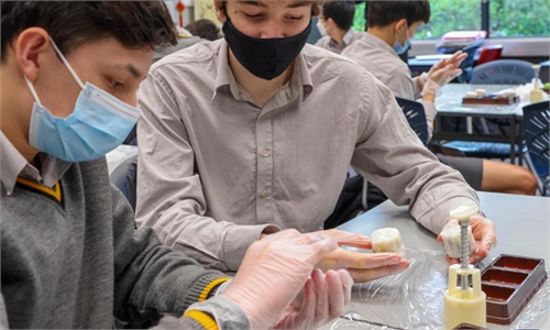 A student makes a moon cake at a Chinese class to celebrate the upcoming Mid-Autumn Festival at a ...