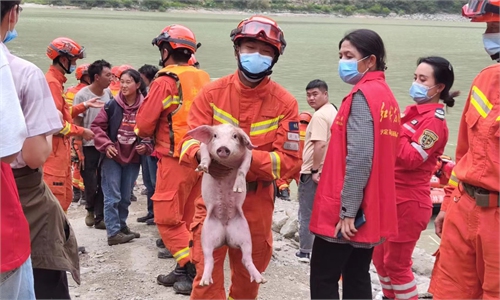 Videos and photos of these brave firefighters walking above the roaring river have been listed as the most-viewed topics on several Chinese social media platforms since Tuesday, but the young firefighters told the Global Times that it's simply their duty to protect people.