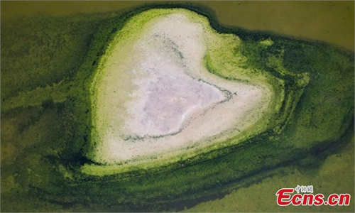 Different salt formations appear in China's 'Dead Sea'