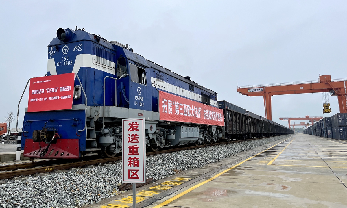 The freight train under the China-Kyrgyzstan-Uzbekistan road-rail intermodal transport system departs from Chengdu, Sichuan Province on September 15, 2022. Photo: IC