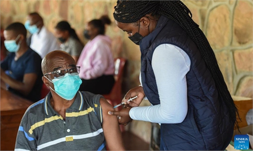 A senior citizen receives COVID-19 vaccine at a vaccination site in Haizhu district of Guangzhou, south China's Guangdong Province. Photo:Xinhua