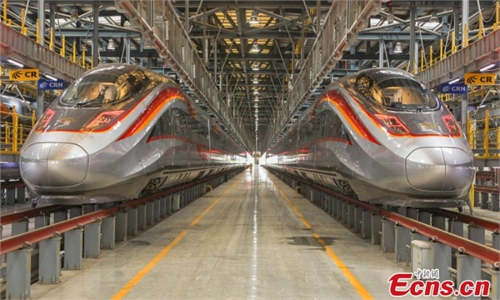 Broadcaster and railway historian Tim Dunn (right) adds the finishing touches to a Hornby model train set featuring Flying Scotsman and a London North Eastern Railway (LNER) Azuma train, along with two kids at the new LNER Family Lounge at King's Cross Station on October 10, 2022, in London, England, ahead of its opening to the public on October 12. Photo: VCG