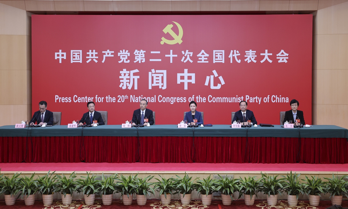 The press center for the 20th CPC National Congress hosts the press conference on the topic "Under the Guidance of Xi Jinping Thought on the Rule of Law, Strive to Build Higher-Standard Rule of Law in China" on October 19, 2022. Photo: Xinhua