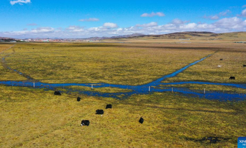This aerial photo taken on Oct. 20, 2022 shows a wetland in Hongyuan County of Aba Tibetan and Qiang Autonomous Prefecture, southwest China's Sichuan Province. Photo: Xinhua