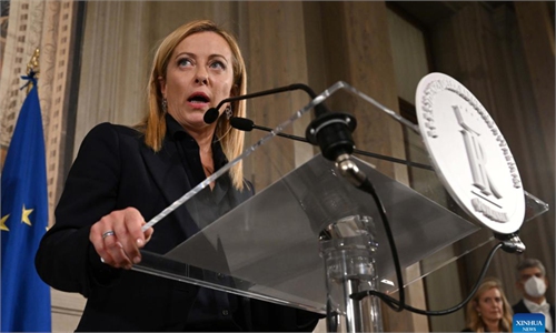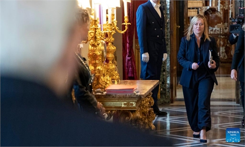 Italy's new Prime Minister Giorgia Meloni (center) is applauded by her cabinet members after her first address to parliament ahead of a confidence vote in Rome on October 25, 2022. The new government faces some of the toughest challenges since World War II and the economy could sink into recession in 2023, Meloni said in her maiden speech to parliament. Photo: AFP