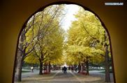 People visit the gingko trees at the Zhongshan Park in Beijing, capital of China, Nov. 10, 2016.