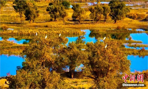 Aerial photo taken on Aug. 6, 2022 shows a section of the Yetimbulak-Ruoqiang expressway in Ruoqiang County, northwest China's Xinjiang Uygur Autonomous Region. Photo:Xinhua