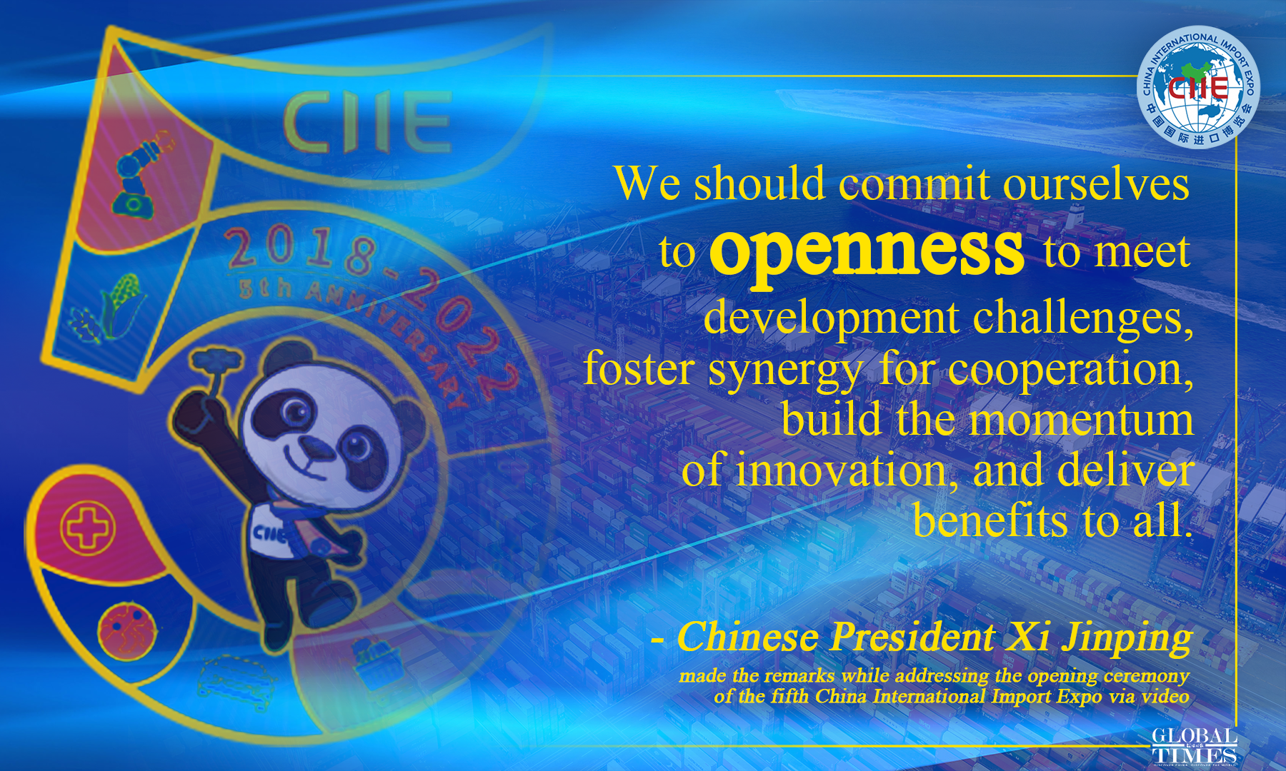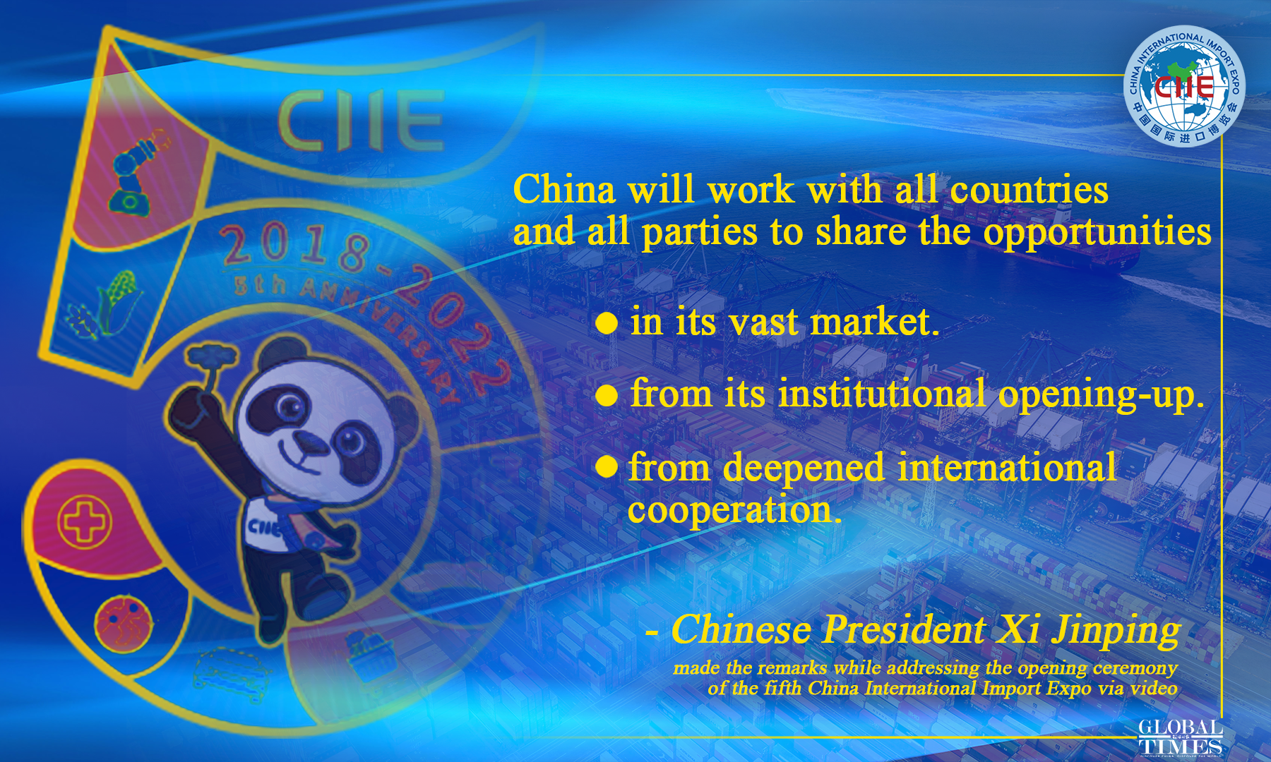 Chinese President Xi Jinping on Friday delivered at the 5th China International Import Expo (CIIE), the world's biggest import fair, a keynote speech that underlined China's unswerving commitment to further opening up its market and to creating new opportunities for the world with its own development, as the world faces a lingering COVID-19 pandemic, energy crisis, and growing trend of anti-globalization and trade protectionism.