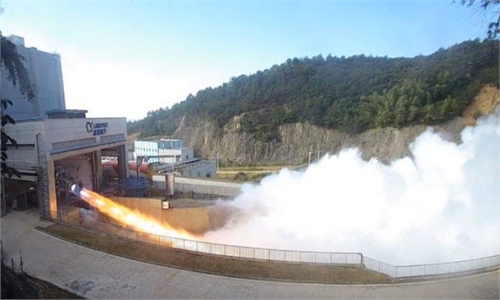 The China Aerospace Science and Technology Corporation (CASC) made two breakthroughs in China's aerospace power systems within one day. The CASC Sixth Academy on Saturday successfully completed the first test of the country's self-developed largest-thrust vacuum liquid rocket engine which carries a maximum thrust of 500 tons after nearly 10 years of research and development, representing a significant breakthrough in key technologies, the Global Times has learned from the CASC.